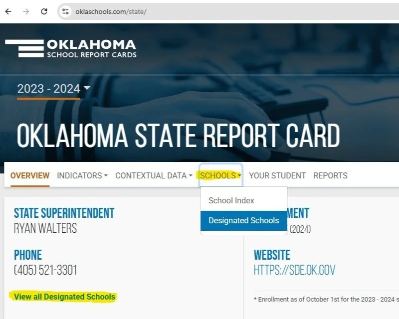 Nonetheless, OklaSchools.com details state accountability factors relative to 698,923 children in 2024. The platform has most of the data you need to evaluate performance of your public school and compare it to others. And they are YOUR schools if you live in Oklahoma. But while this appears to be accurate data, the platform is not easy to navigate. Here’s a how-to:
